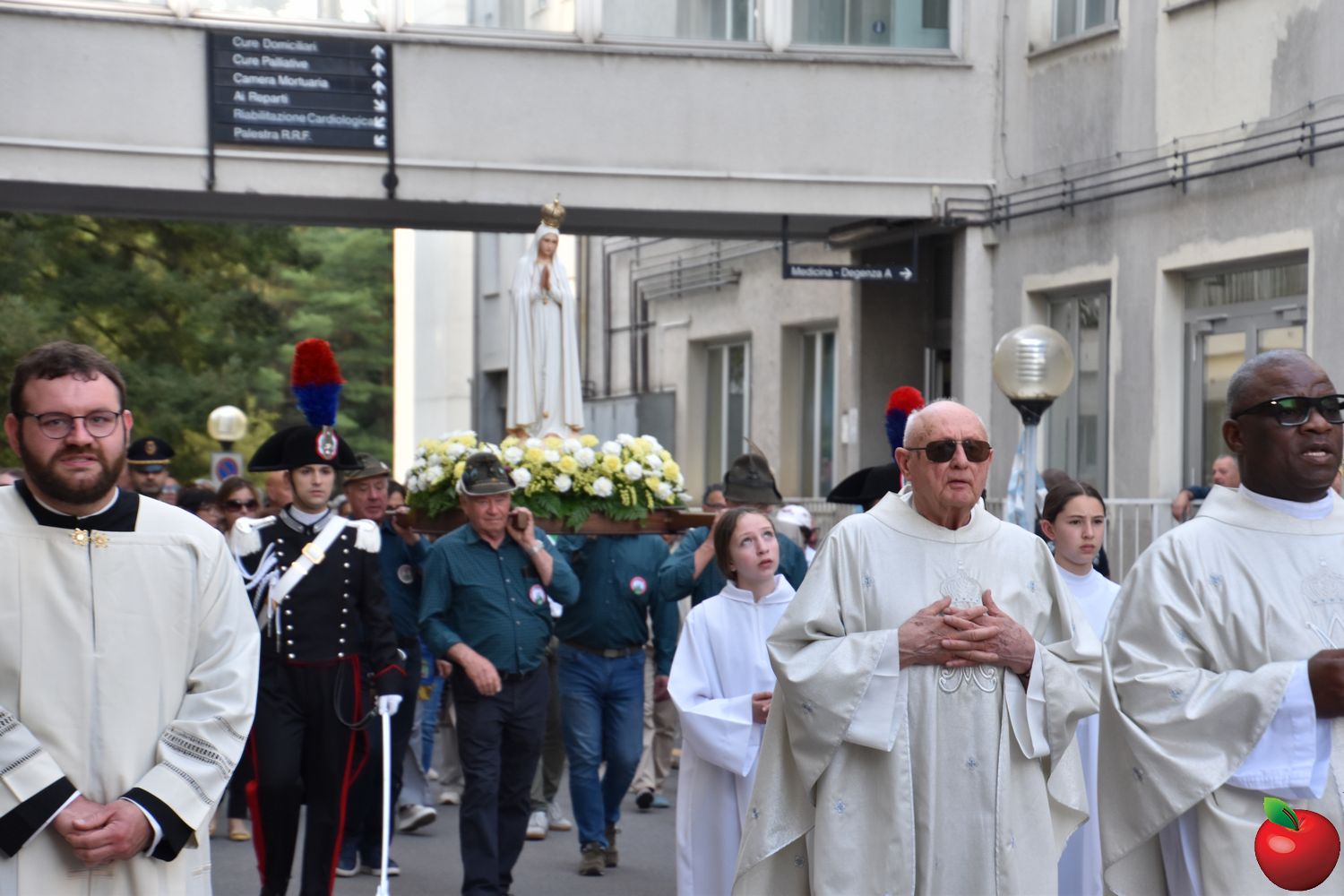 A chiudere la celebrazione le riflessioni del cappellano del presidio ospedaliero don Biagio Fumagalli: “Maria la ricordiamo come “Salus infirmorum” o “Regina pauperum”, “Salute degli infermi” e “Regina dei poveri”” ha detto confessando di essere stato lui a suggerire don Mauro di far atterrare la Vergine proprio all'ospedale: “l'ospedale è il luogo in cui Maria può dare consolazione, forza: all'ospedale le persone non vengono per morire, ma per guarire. Così tutti coloro che si impegnano in ospedale sono coloro che si impegnano di far tornare salute e vita nelle persone. Grazie a Maria per la sua presenza in mezzo a noi, di oggi, attraverso la sua statua, ma anche per la sua presenza di sempre, attraverso le nostre preghiere”.