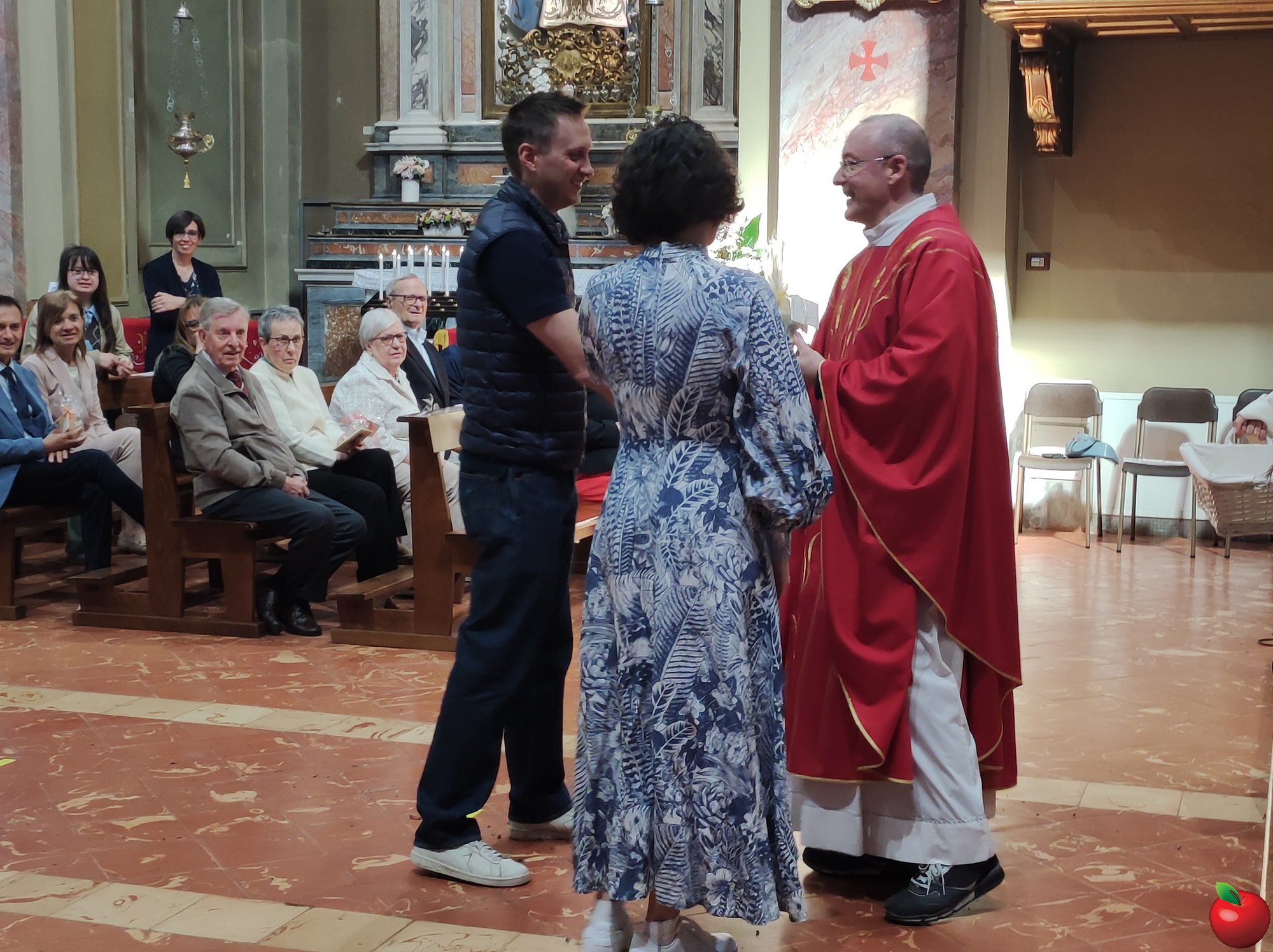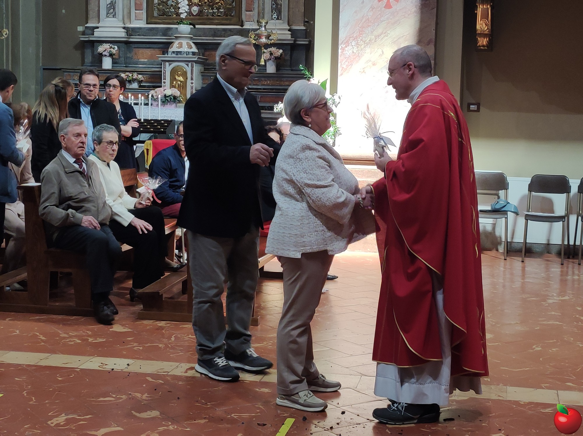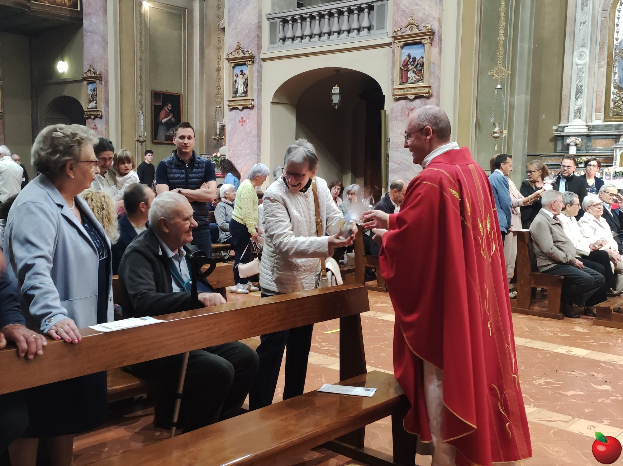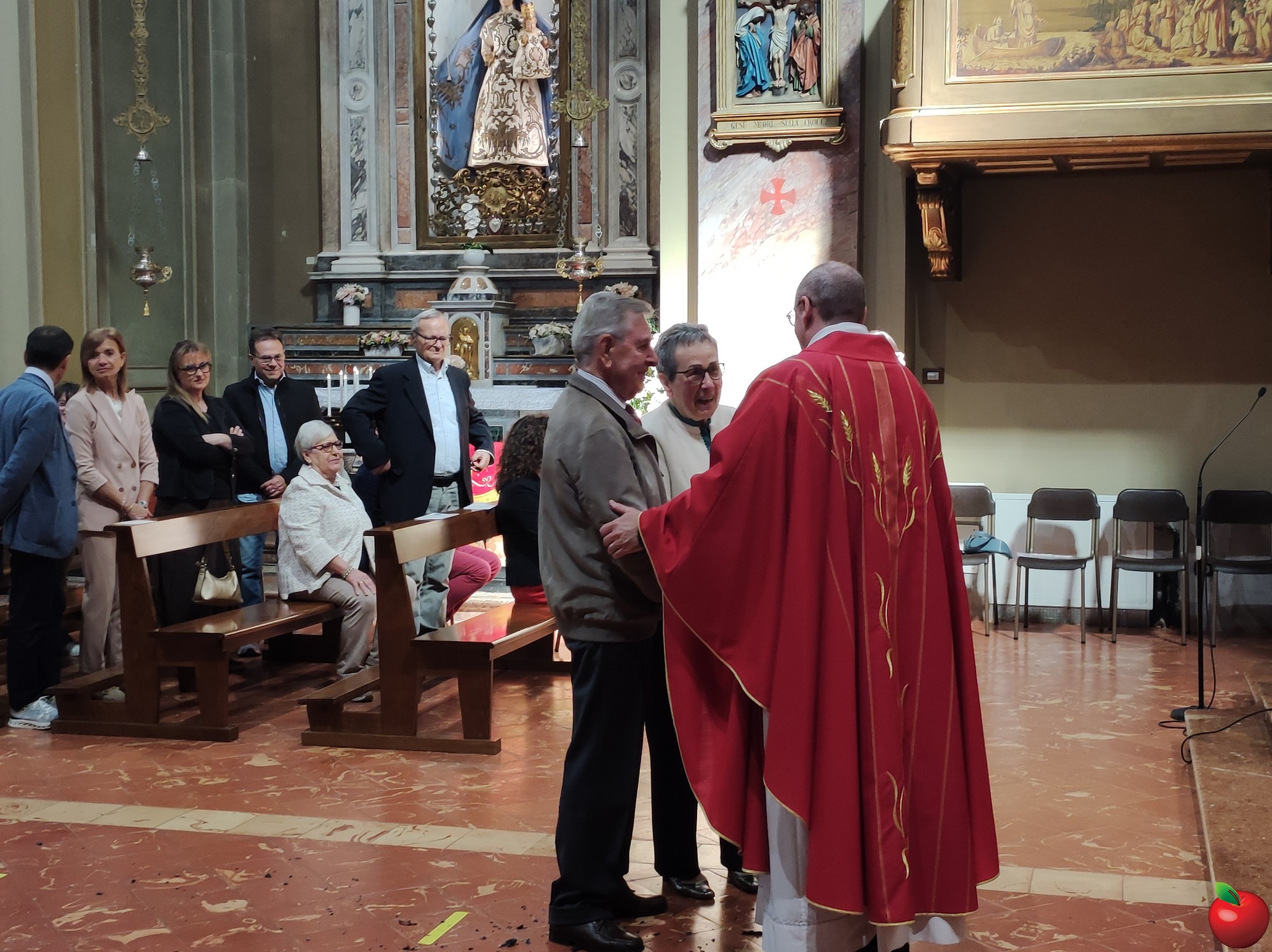 Al termine della funzione le coppie hanno ricevuto un piccolo omaggio, prima di spostarsi con le loro famiglie in oratorio per un aperitivo conviviale.