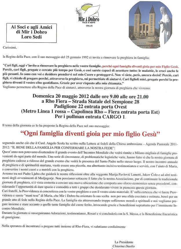 Domenica 20 maggio presso il padiglione della Fiera di Rho, entrata Porta ovest, si terrà un incontro organizzato dall'Associazione Mir I Dobro. Ecco i dettagli
