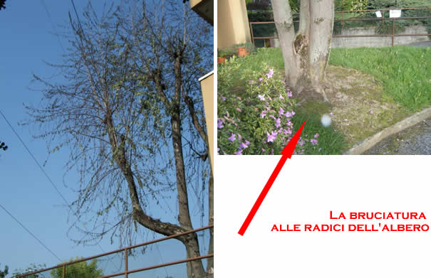 Qualcosa, infatti, ha minato alle radici la sua salute, forse un diserbante o comunque qualcosa di acido, che oltre ad avere bruciato la corteccia ha pure fatto ammalare la fioritura di foglie verdi e rigogliose. Già in passato la pianta era stata "vittima" di una violenta potatura da cui si era poi ripresa.