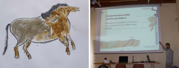 E per far sì che questo primo approccio alla preistoria fosse ancora più accattivante, dopo la conferenza, i bambini sono stati protagonisti di un pomeriggio all’insegna dell’educazione ambientale, proposto dai volontari. Si sono impegnati, infatti, tramite l’uso dei pigmenti del burro, del lardo, delle argille e della carbonella, a realizzare dei veri e propri graffiti rupestri, adoperando dei colori il più possibile simili a quelli impiegati dagli uomini primitivi. Dopo una passeggiata nel Parco, i bimbi hanno quindi fatto merenda in compagnia, con cibi che hanno rievocato il più possibile i pranzi e le cene dei nostri antenati: miele, nocciole, latte e tante altre sfiziosità naturali.