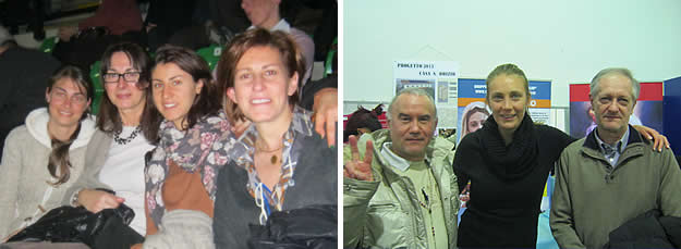 A sinistra la dott.ssa Garruti e l'amica Antonella di Merate. A destra Marco, Mara e Alberto Agostoni