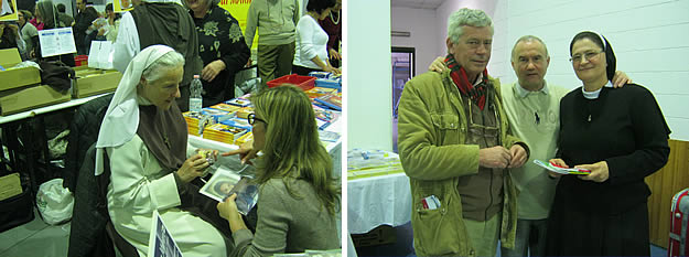 Suor Emmanuel dopo la testimonianza accoglie i fedeli. Suor Lidia con Marco Ripamonti e Sergio Pagliaroli direttore della rivista Senapa