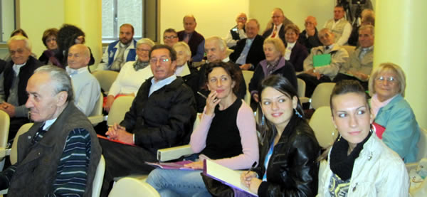 Logopedisti afferenti a strutture ospedaliere e rieducatori provenienti da sedi Ailar lombarde ed extra regionali hanno partecipato numerosi al primo dei 6 appuntamenti in programma nella mattinata di mercoledì 13 ottobre, per insegnare e imparare gli svariati aspetti della rieducazione secondo il "verso del piccione", innovativo metodo sviluppato dalla rieducatrice Emma Rita Ferri e noto ben oltre i confini meratesi. Il direttore generale dell'azienda ospedaliera Ambrogio Bertoglio ha evidenziato il grande valore dell'opera di volontari che arricchiscono la vita del prossimo, proprio come fanno i volontari Ailar e come impareranno a fare i frequentatori del corso. Il direttore sanitario dell'ospedale di Merate Gedeone Baraldo ha spiegato che "Rita ha sviluppato un metodo di fonazione innovativo vivendo la malattia e le difficoltà che comporta in prima persona, ogni giorno, e mettendo la propria esperienza al servizio degli altri con risultati straordinari. Come lei tanti pazienti sono divenuti "malati esperti", in grado cioè di insegnare ad altri nella stessa situazione come vivere meglio".