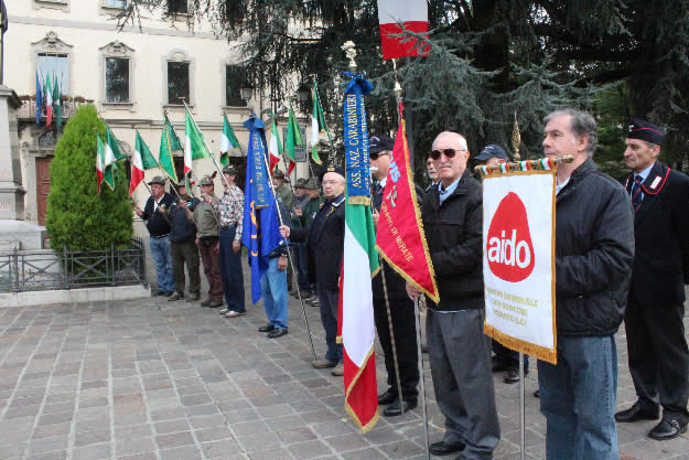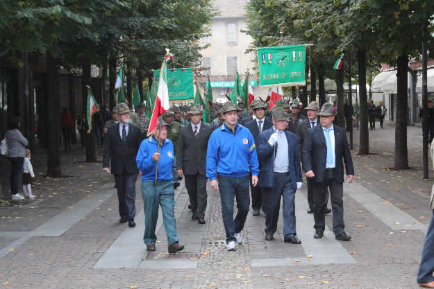 Dopo l'omaggio al vessillo, portato dall'alfiere della sezione il corteo ha risalito Via Fratelli Cernuschi, Via Cazzaniga, Via Manzoni ed è approdato in Piazza Prinetti e infine in Piazza degli Eroi. Autorità civili, militari e tutta la cittadinanza presente ha reso onore al tricolore, enorme, issato nel parco delle Rimembranze e poi sulle note del "Piave" è stata deposta una corona di alloro ai caduti.