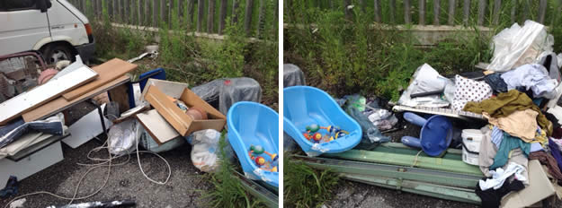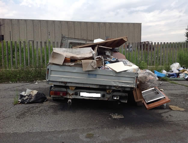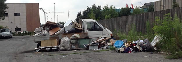In una traversa di Via della Tecnica a Osnago che funge da parcheggio, completamente aperto al transito, non chiuso da alcuna barriera si trova, probabilmente da tempo viste le condizioni, un furgone sommerso dalla spazzatura. Si tratta di un camioncino di quelli "da muratore" utilizzato forse per un trasloco.