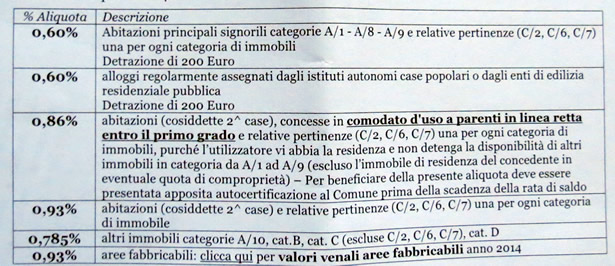 IMU: l’Imposta Municipale Unica non viene più applicata all’abitazione principale (ad eccezione delle abitazioni di lusso), e per le seconde case e pertinenze sarà applicata con aliquota dello 0,93% (era 0,81%). Per le abitazioni concesse in comodato d’uso gratuito a parenti in linea diretta entro il primo grado, l’aliquota scende allo 0,86%.