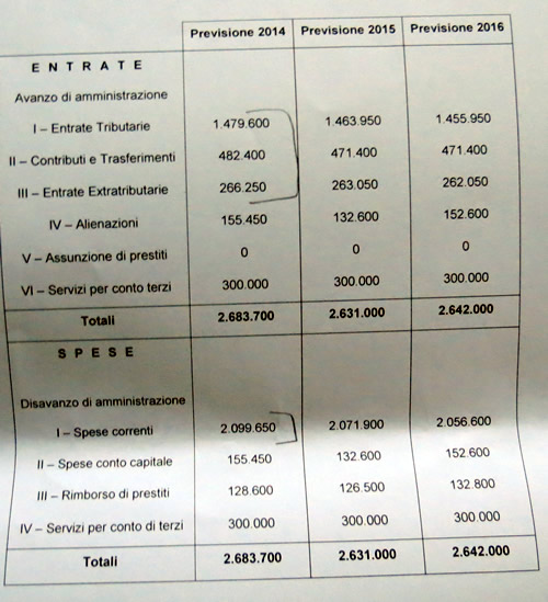 Queste le principali voci di bilancio, previsione per i prossimi 3 anni: