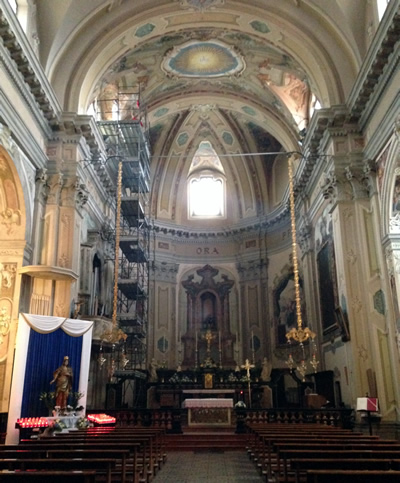 L'impalcatura montata all'interno della parrocchiale di Santa Maria