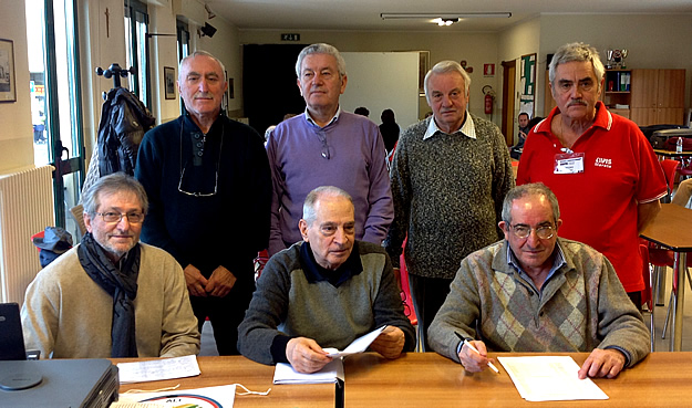 Seduti da sinistra Giovanni Fumagalli (segretario Ali), Renato Termini (Ali) e Sante Lo Muzio (Ali) In piedi da sinistra Giuseppe Crippa (capogruppo Merate Avis), Francesco Perego (vicepresidente vicario Avis), Alberto Anghileri (ALI), Alfredo Fenoglio (consigliere Avis e capogruppo di Montevecchia)