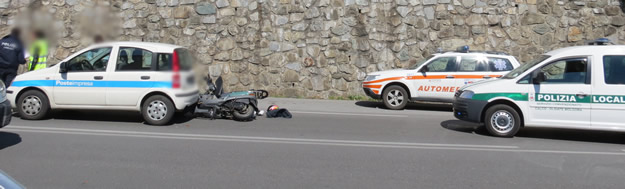 Da una prima ricostruzione dei fatti raccolta sul posto, e in attesa di trovare verifiche, sembra che la Fiat Panda guidata da una donna e diretta verso La Valletta Brianza abbia frenato poiché la vettura di fronte doveva svoltare. Il motociclo, per cause al vaglio della Polizia locale di Calco e Olgiate intervenuta per i rilievi, è andato contro la macchina urtandola nella parte posteriore. La donna alla guida del motorino è caduta a terra, e il mezzo a due ruote si è incastrato sotto la Panda.