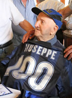 Si erano radunati in 140 per festeggiare il secolo di "Pin", Giuseppe Gargantini interista doc, tagliato il 19 settembre 2013. Per lui tanti omaggi nerazzurri: dal pallone autografato da Cordoba, agli auguri personalissimi di Massimo Moratti, alla maglietta con il numero 100 fino all'omaggio della città di Merate. Commosso ma lucido, Giuseppe aveva ricevuto gli auguri di tanti amici e parenti e aveva posato davanti a un enorme torta.