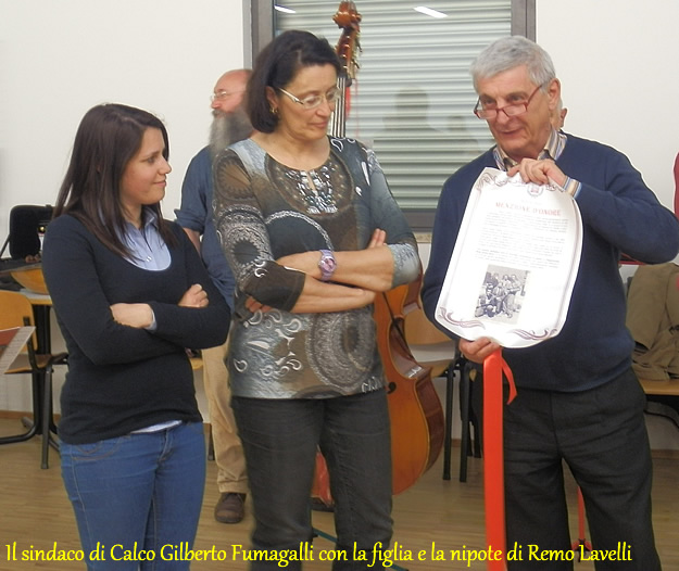 Il primo - come ha spiegato il Sindaco Adele Gatti nel consegnargli il riconoscimento - militare di Marina, venne catturato a Venezia dai tedeschi dopo l'8 settembre e fu deportato in Germania come prigioniero di guerra, facendo ritorno ad Airuno solo nel luglio del '45; nel gennaio scorso gli è stata assegnata, insieme ad altro otto deportati, la medaglia d'onore del Presidente della Repubblica. Lavelli invece, che purtroppo non ha potuto essere presente alla cerimonia, prese parte allo scontro a fuoco con i tedeschi avvenuto il 26 aprile 1945 all'altezza delle "Quattro strade", lungo la Statale per Brivio, dove oggi un monumento ricorda i ragazzi che quel giorno persero la vita; il Sindaco di Calco Gilberto Fumagalli ha consegnato alla figlia la menzione d'onore in omaggio al valore del padre.