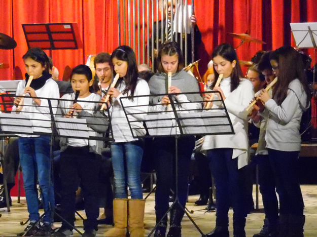 Successivamente gli alunni della classe quinta hanno suonato con la banda il tradizionale Astro del ciel, scritto nel lontano 1818 a Vienna, e Gli angeli delle campagne, seguiti poi dai compagni delle classi quarte che, con i flauti dolci, hanno accompagnato La marcia dei bambini e la polka francese Nel bosco di Krapfen, conquistando i meritati applausi del pubblico.