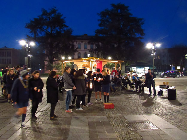 Merate: la banda regala una carrellata di melodie di Natale. E la fiaccola di Betlemme arriva in piazza a portare la Luce