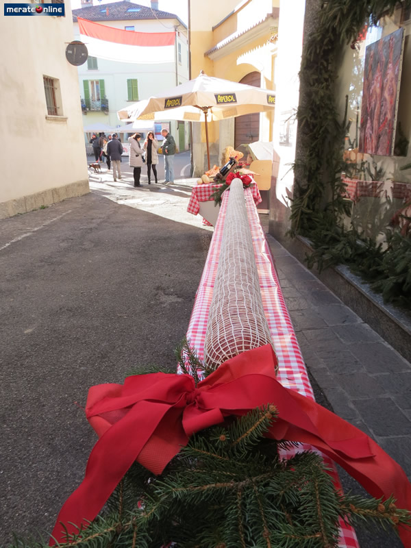 Protagonista della mattinata è stato il lunghissimo salame realizzato dai fratelli Agostoni di Beverate esposto dinnanzi alla "bottega" del norcino Eliseo Brioni: ben 3 metri e 30 centimetri di bontà, per un peso sui 20 - 22 chili. Una vera e propria leccornia "made in Brivio" dunque, capace di catalizzare l'attenzione di quanti, prima di mezzogiorno, si sono concessi - in una domenica fredda ma comunque baciata dal sole - quattro passi lungo il fiume, "imbattendosi" anche nei banchi vendita di altri prodotti del lecchese, dallo zafferano all'olio del Lario, senza perdersi l'aperitivo offerto in piazza Carozzi, la medesima location nella quale - nel corso della giornata - sono poi stati distribuite anche la merenda a base di thè, cioccolata e biscotti nonché l'immancabile pane e salame cotto servito dalle penne nere del paese.
