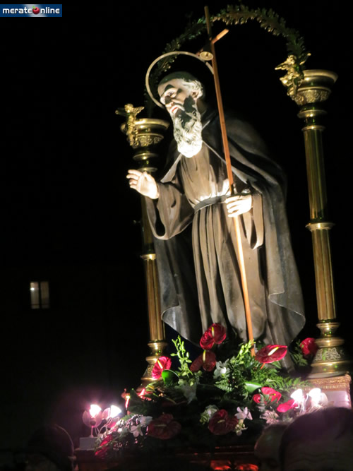Alle 20.30 - mentre gli ultimi si apprestavano a gustare un bel piatto di trippa fumante, offerta gratuitamente presso il Ristorante Al Porto dagli eredi di Adelmo Ferin, scomparso recentemente, che non si sono sottratti a quella che ormai è una consuetudine della Festa - per le vie del borgo ha iniziato a snodarsi la processione con la statua di Sant'Antonio, presieduta a Padre Pietro Villa e "illuminata" dalle candele flambeaux rette dai tanti partecipanti.