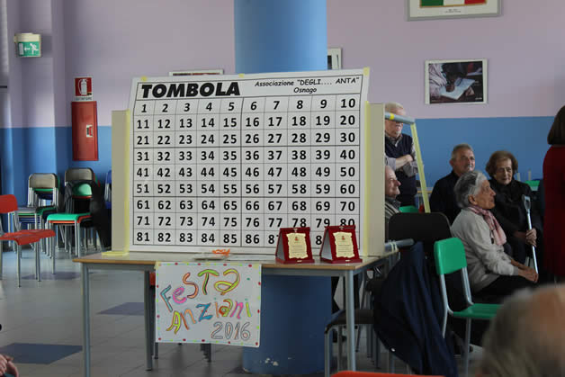 Entusiasta dell'esito della manifestazione Bellano Pieraldo, presidente dell'associazione "Degli...Anta" nonché emerito assessore ai servizi sociali, che da sempre si occupa del sostegno agli anziani e, in generale, alla parte più fragile della popolazione. "L'associazione "Degli... Anta" quest'anno compie vent'anni, e ogni anno organizza questa festa dedicata a tutti gli anziani del paese. La nostra associazione, tuttavia, si occupa degli anziani tutto l'anno, essendo un centro diurno accessibile quattro giorni alla settimana: il martedì, il mercoledì, il venerdì e la domenica. Le attività da noi organizzate tra le più svariate: giochi di società come tombola, carte o dama, musica e balli di coppia, ma anche letture di giornali per rimanere aggiornati sui temi di attualità. Non solo: talvolta i cuochi dell'associazione "Io per Osnago" collaborano insieme noi e preparare il pranzo agli anziani, regalando loro un'ulteriore occasione per stare insieme. Anche oggi si sono prestati a darci una mano cucinando per i festeggiati questo pranzo coi fiocchi, composto di antipasto, primo, secondo, dolce, caffè e amaro. Come noi, infatti, anche l'associazione "Io per Osnago" si è sempre occupata degli anziani e non solo dal punto di vista culinario: organizzano spesso attività come il trasporto sociale di anziani, ma anche di tutte le persone bisognose del paese."