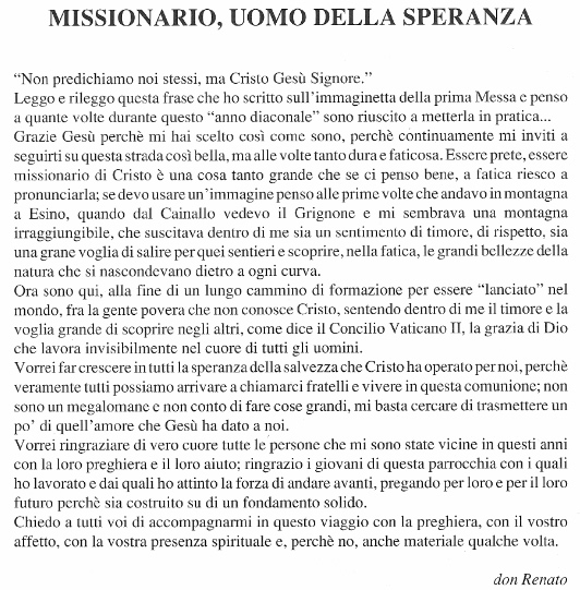 L’articolo che don Renato aveva scritto nel 1992, pubblicato