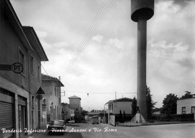 Piazza Annoni, dove c’erano il Cral e il parrucchiere Enrico origo a destra dove c'è il cartello delle poste