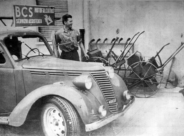 Amante dei motori e appassionato di agricoltura, nel 1937 aveva acquistato il suo primo trattore e, alla fiera di Milano l'anno seguente, una prima rudimentale trebbiatrice della quale c'è ancora una foto che ritrae tutto il personale che ci lavorava attorno e così aveva iniziato a girare nei paesi limitrofi a trebbiare il grano.