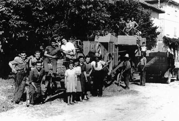 Fratelli sala macchine agricole: la trebbiatrice e il personale addetto