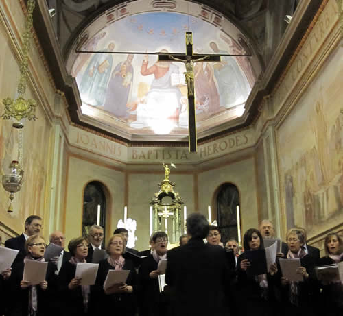 Nella prima parte del concerto il coro parrocchiale di Montevecchia e l'Ensemble Vocale "Ricercar Cantando", entrambi diretti da Marco Moiraghi, hanno presentato una selezione di musiche polifoniche dal ‘500 al ‘900, con particolare attenzione ai canti mariani;Il maestro Marco Moiraghi