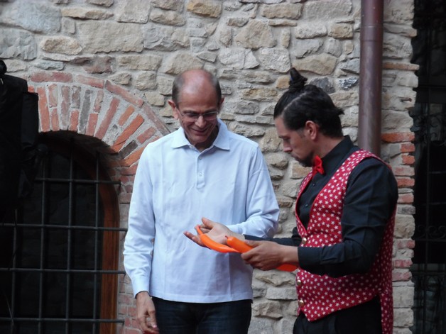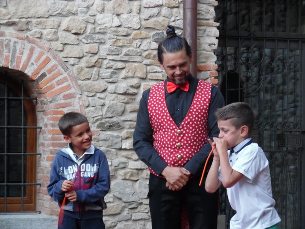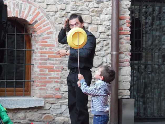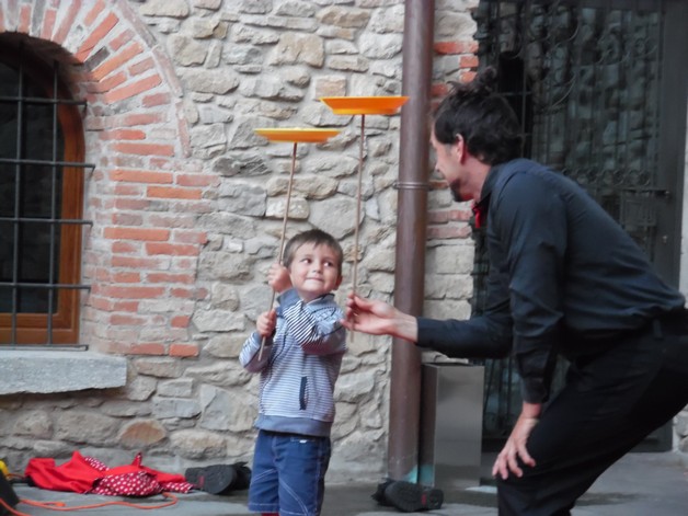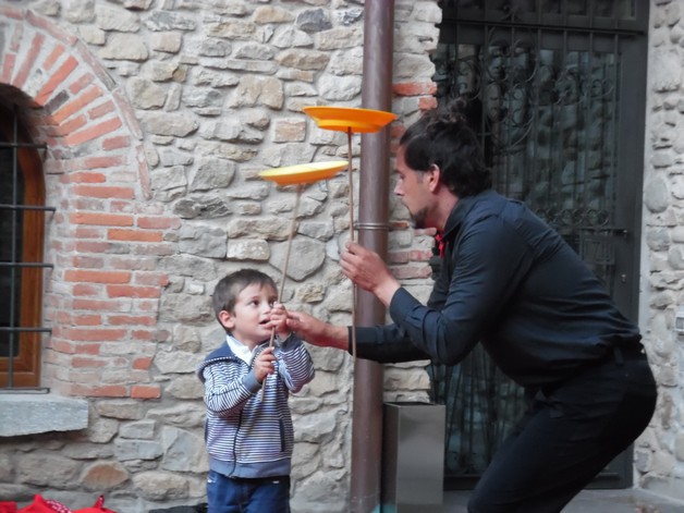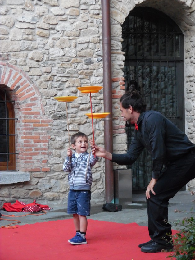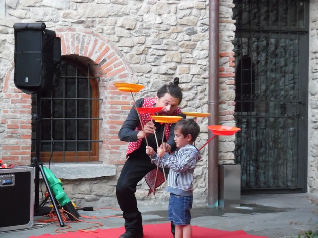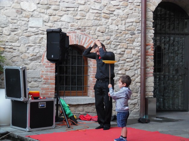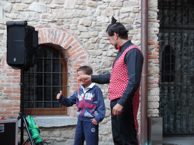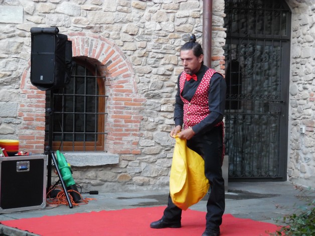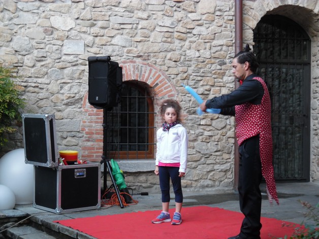 Partendo da piazza Pertini, i partecipanti si sono così avventurati per i borghi della frazione calchese, passando dal cortile del Resort e proseguendo poi nel meraviglioso giardino della residenza "Il Bosco", per poter assistere allo spettacolo, anch'esso itinerante, di Onelio, prestigiatore e giocoliere.