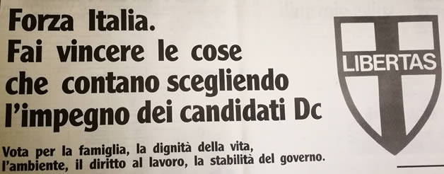 La Dc lecchese, dopo lunghi mesi di guerra intestina, in vista dell'importante tornata elettorale per le politiche del 14 giugno, si ricompatta affidando la gestione del partito a un triumvirato: il ciellino Mauro Panzeri prende il posto di Domenico Galbiati, candidato alla Camera, a capo della segreteria; presidente del partito in sostituzione di Cesare Golfari, candidato al Senato, viene nominato il commercialista Guido Puccio; Costantino Anghileri, della corrente di minoranza capeggiata da Ezio Citterio di Lomagna, viene nominato vice segretario unico. Così il quadro politico si ricompone e la battaglia elettorale entra nel vivo. Sui manifesti elettorali comparirà nelle ultime due settimane una scritta destinata ad avere sei anni dopo ben altri successi: "Forza Italia".......