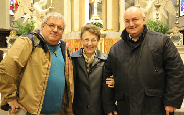 Suor Carla con il missionario meratese Antonio Soffientini e Don Luigi Peraboni nel 2015 durante le celebrazioni per il suo 50esimo