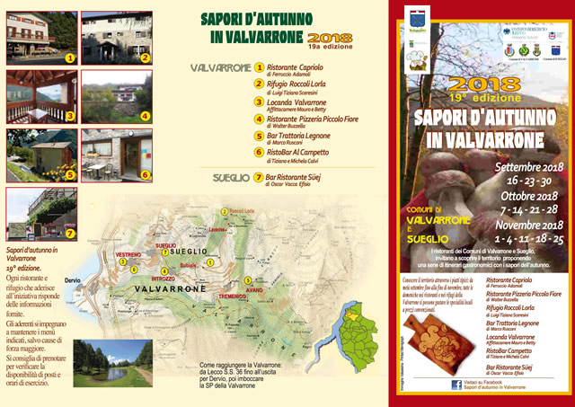 Già iniziato il giro di boa per la diciannovesima edizione dei “Sapori d’autunno”, la rassegna culinaria proposta dai ristoranti della Valvarrone. Ancora per tutte le domeniche di novembre sarà possibile gustare le specialità di stagione dai sette ristoranti e rifugi che partecipano all’iniziativa a prezzo convenzionato.