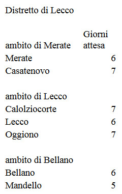 Mi sono fatto ripetere i due presidi principali (Lecco 28 dicembre 2019 e Merate 18 dicembre 2019). Alla fine ho chiesto come stavano gli altri ambulatori. Oggiono era quello con meno attesa, ma si poteva prenotare per il 26 giugno 2019. Gli altri tutti dopo. L’operatrice ha cercato anche nell’area di Erba, ma i tempi non erano diversi.