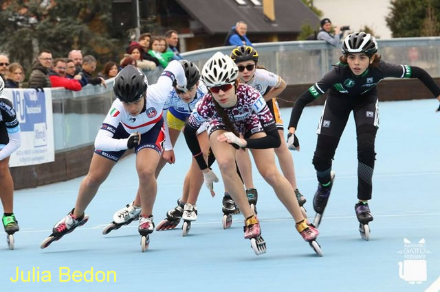 Nella categoria ragazze doppio oro per JULIA BEDON che non ha proprio rivali nella prova crono che domina con un tempo eccellente; deve invece mettercela tutta per riuscire a sopravanzare le brave avversarie, al secondo anno di categoria, nella 3000m a punti che vince comunque grazie alla tenacia e all'acume tattico che la contraddistinguono.