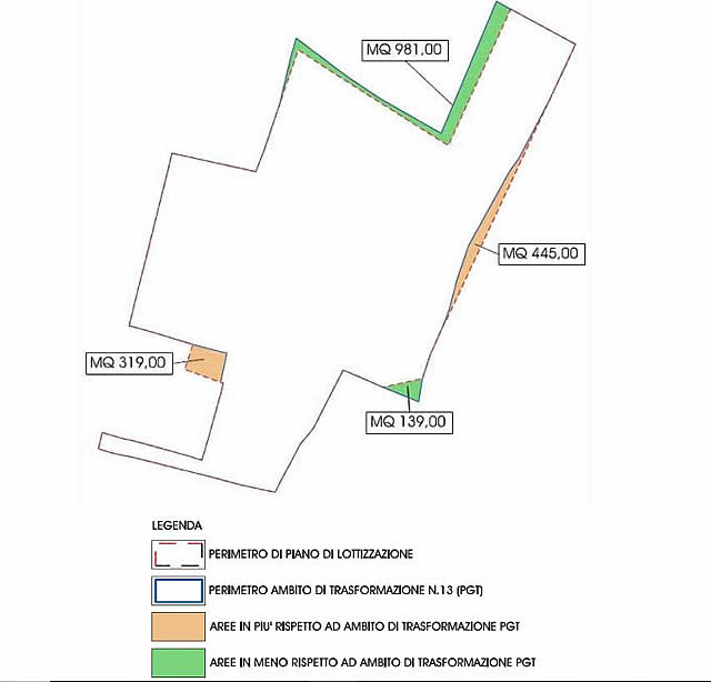 L'area si estende su una superficie agricola inutilizzata di 32.197 mq, diminuita quindi rispetto all'ambito di trasformazione presentato nel PGT del 2013 (che la misurava in 32.553 mq) per far coincidere il comparto con l'insieme delle proprietà interessate.
