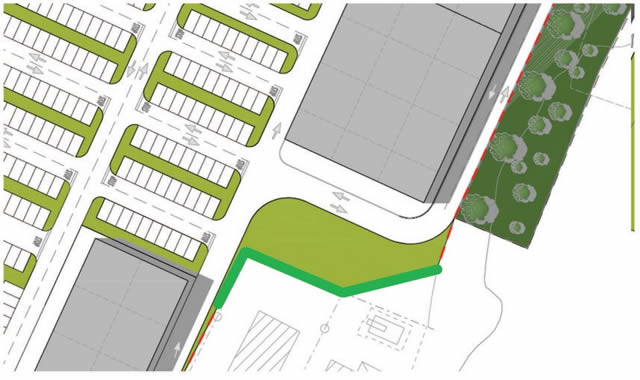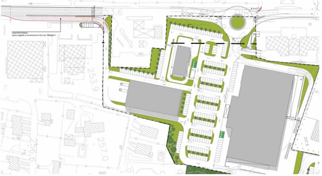 Ma più in generale con le nuove disposizioni nello spazio, i tre edifici - tutti ad un solo piano - si nasconderanno quasi interamente dietro ad altre strutture già presenti. L'edificio mediano misurerà 1.785 mq e, come il precedente, avrà finalità commerciali non alimentari. Il più piccolo di 484 mq sarà il più esposto perché diviso dalla strada principale solo da una fascia di alberature di media altezza. La destinazione prevista è terziaria, si parla di un fast food.