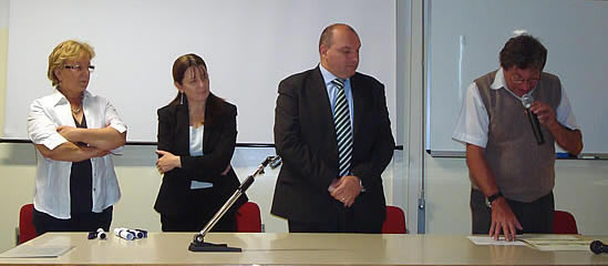 Da sinistra Miriam Cornara, Francesca Bonacina, Carlo Malugani e il preside del Fiocchi Walter Valsecchi