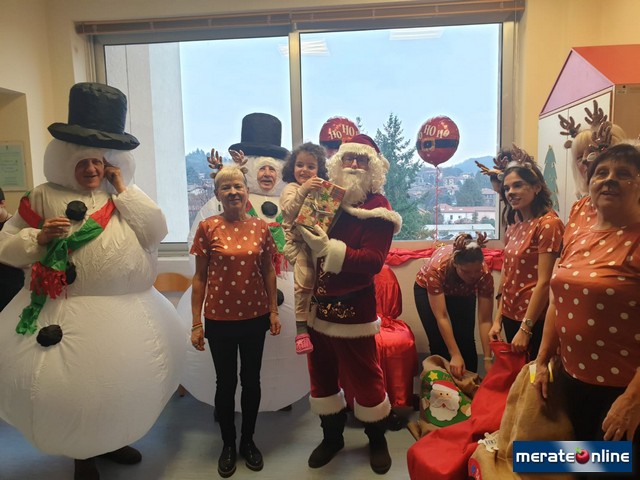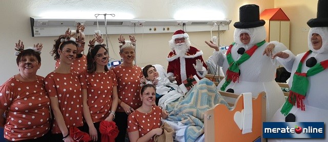Una parentesi allegra e musicale quella che, come da tradizione, si è tenuta nel reparto di pediatria dell'ospedale Mandic di Merate. Gli infaticabili volontari dell'ABIO (associazione per il bambino in ospedale) si sono mascherati da renne e pupazzi di neve, ingaggiando anche un coreografico Babbo Natale, e hanno distribuito doni ma soprattutto tanti sorrisi.