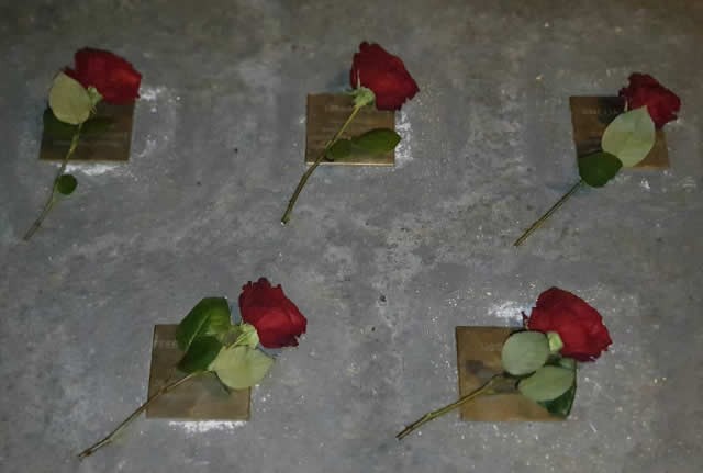 Nella stessa serata delle rose rosse sono state poste sulle pietre d’inciampo che erano state posizionate in via Prati un anno fa in onore alla famiglia Milla che trovarono la morte ad Auschwitz.