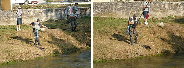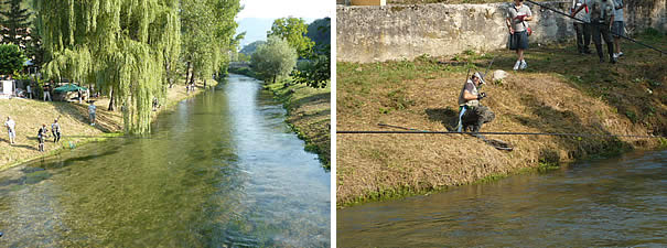 In ogni gara i pescatori hanno a disposizione dai 200 ai 400 metri di torrente dove poter scegliere la posizione migliore per insidiare le trote, solitamente del tipo Fario. Prima di ogni gara l'organizzazione provvede all'attività di ripopolamento del tratto di fiume gettando nuovi esemplari nelle acque, che rimangono quindi a popolare il "campo di gara" anche al termine della competizione.