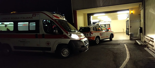 Le ambulanze in fila all'ingresso del Pronto Soccorso