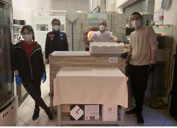 I coperti, poi, a causa delle disposizioni sulle distanze di sicurezza, saranno un terzo rispetto al normale. Senza parlare del costo che comporterà la riapertura: si parla di quasi 10.000 euro fra sanificazione e i divisori obbligatori di plexiglass fra i tavoli. Siamo rimasti chiusi tutto marzo e pur avendo riaperto già da un mese abbiamo dovuto lasciare a casa alcuni dei dipendenti per il poco lavoro: ad esempio non avrebbe senso chiamare il cuoco se consegniamo solo pizze... speriamo che con la ripresa dell'asporto la richiesta aumenti. Per di più sarebbe comunque un problema cercare di fare lavorare tutti a pieno regime perchè non potremmo garantire la distanza di sicurezza fra un pizzaiolo e l'altro. Non ci voleva proprio con l'arrivo della bella stagione: d'estate la gente esce di più e noi possiamo permetterci di rimanere aperti fino a tardi. Anche in periodo di chiusura totale, però, abbiamo trovato il modo di renderci utili, aprendo eccezionalmente le cucine e consegnando 70 pizze al personale dell'Ospedale Mandic di Merate. Anche l'altro giorno abbiamo fatto una consegna speciale alla casa di riposo di Ornago... insomma, se ci avanza tempo ci teniamo occupati."
